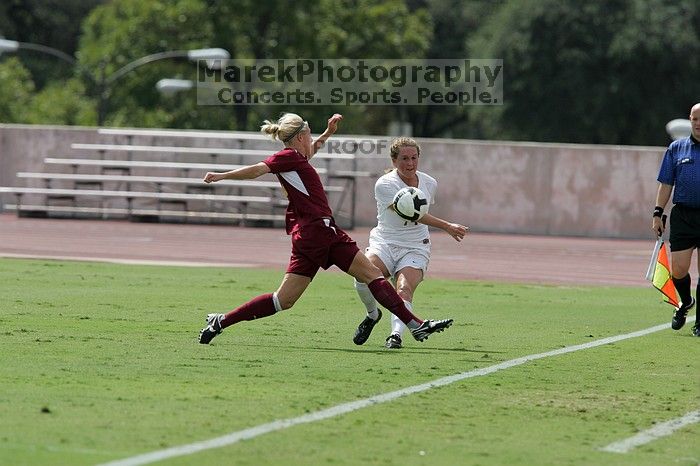 | UT senior Kasey Moore (#14, Defender). The University of Texas women's soccer team won 2-1 against the Iowa State Cyclones Sunday afternoon, October 5, 2008. |