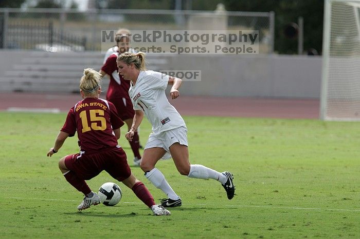 | UT sophomore Niki Arlitt (#11, Forward). The University of Texas women's soccer team won 2-1 against the Iowa State Cyclones Sunday afternoon, October 5, 2008. |