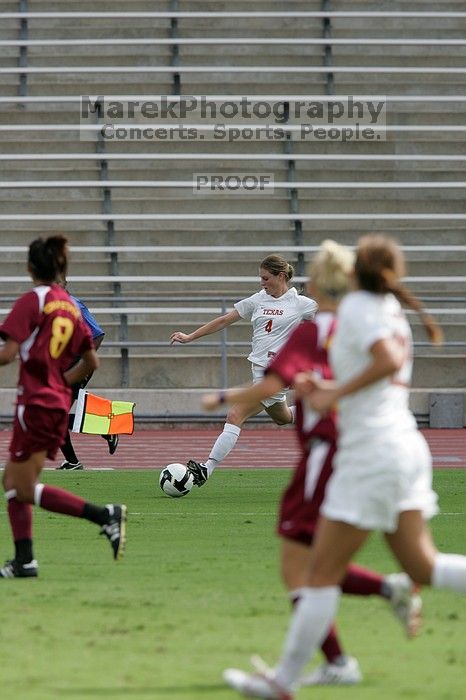 UT senior Jill Gilbeau (#4, Defender and Midfielder).  The University of Texas women's soccer team won 2-1 against the Iowa State Cyclones Sunday afternoon, October 5, 2008.