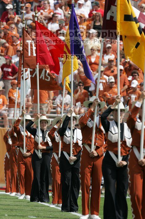 | The UT marching band takes the field before the Arkansas football game. The University of Texas football team defeated the Arkansas Razorbacks with a score of 52-10 in Austin, TX on Saturday, September 27, 2008. |