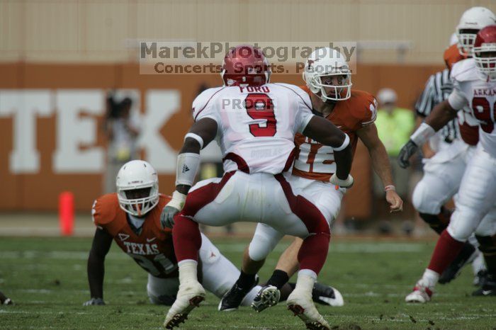 | The University of Texas football team defeated the Arkansas Razorbacks with a score of 52-10 in Austin, TX on Saturday, September 27, 2008. |