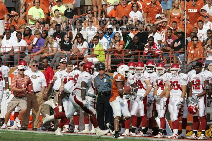| The University of Texas football team defeated the Arkansas Razorbacks with a score of 52-10 in Austin, TX on Saturday, September 27, 2008. |