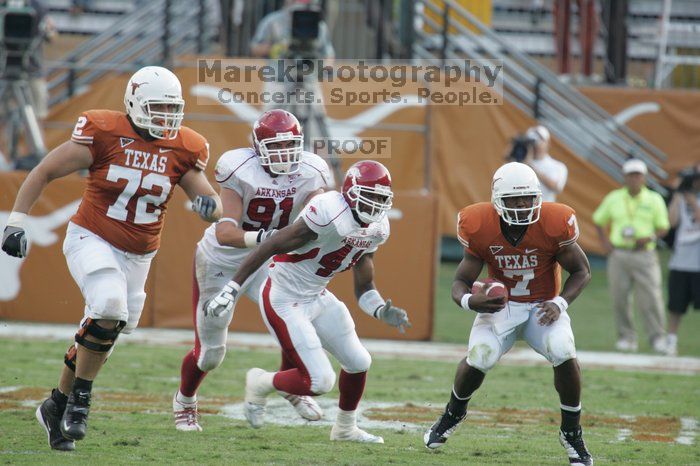| The University of Texas football team defeated the Arkansas Razorbacks with a score of 52-10 in Austin, TX on Saturday, September 27, 2008. |