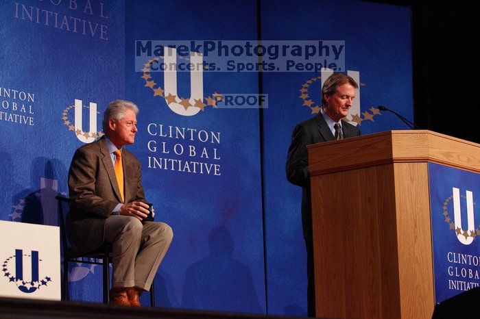 | UT President William Powers Jr. speaks at the opening of the first plenary session of CGIU with Former President Bill Clinton listening. Day one of the 2nd Annual Clinton Global Initiative University (CGIU) meeting was held at The University of Texas at Austin, Friday, February 13, 2009. |