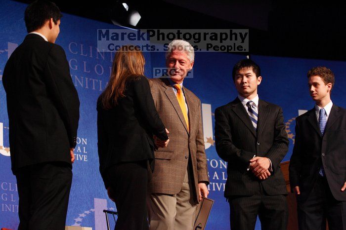 | Former President Bill Clinton hands out commitment certificates to CGIU attendees for their exceptional pledges to the CGI cause during the opening plenary session of the CGIU meeting. Day one of the 2nd Annual Clinton Global Initiative University (CGIU) meeting was held at The University of Texas at Austin, Friday, February 13, 2009. |