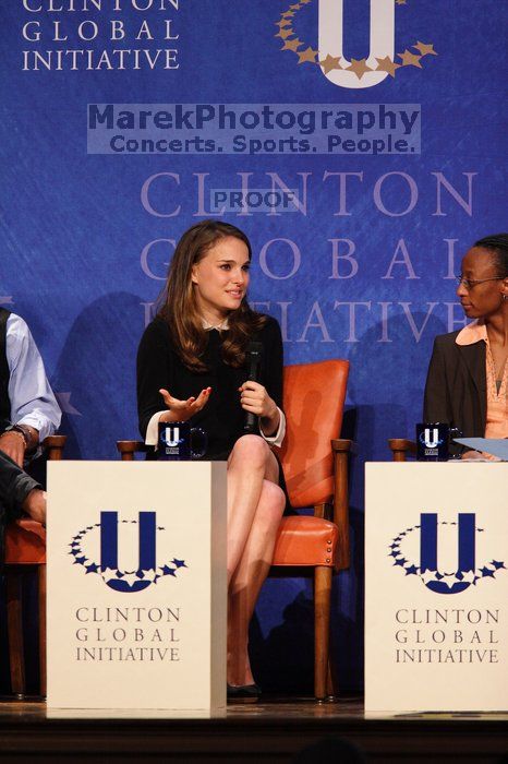 | Blake Mycoskie (L), founder of TOMS shoes, Natalie Portman (C), and Mambidzeni Madzivire (R), BME graduate student at Mayo Graduate School, at the first plenary session of the CGIU meeting. Day one of the 2nd Annual Clinton Global Initiative University (CGIU) meeting was held at The University of Texas at Austin, Friday, February 13, 2009. |