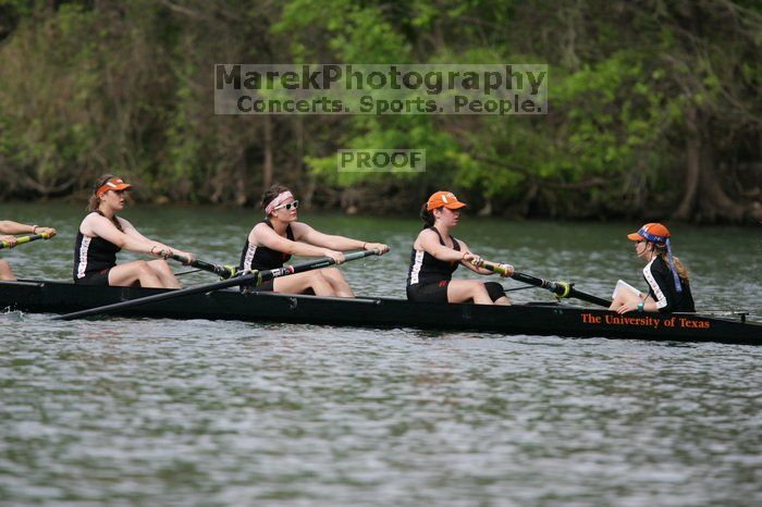 | The Texas Rowing first novice eight team finished with a time of 7:51.3, losing to Wisconsin, which completed the race in 7:39.4. This was the third session of the Longhorn Invitational, Saturday afternoon, March 21, 2009 on Lady Bird Lake. |
