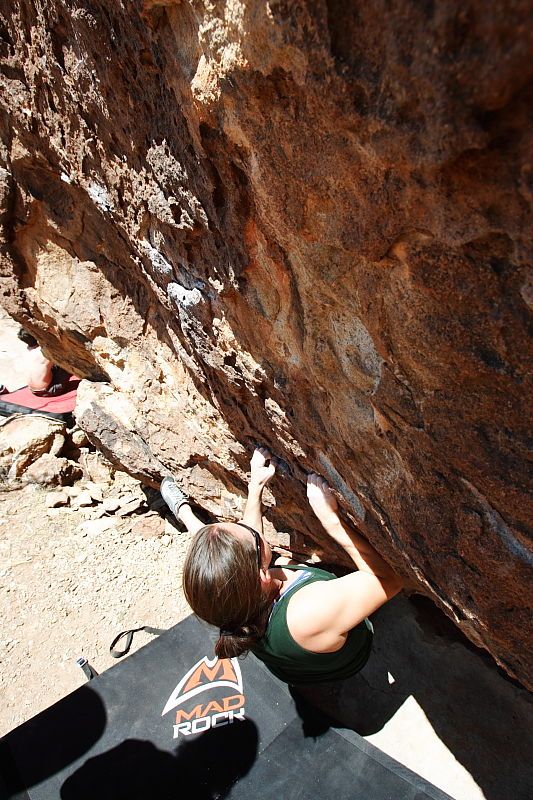 Beth Marek rock climbing in Hueco Tanks State Park and Historic Site during the Hueco Tanks Awesome Fest 2010 trip, Saturday, May 22, 2010.
