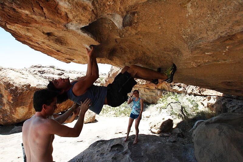 | Javier Morales rock climbing in Hueco Tanks State Park and Historic Site during the Hueco Tanks Awesome Fest 2010 trip, Saturday, May 22, 2010. |