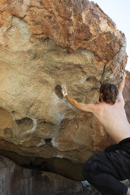 | Andrew Dreher rock climbing on No One Gets Out of Here Alive (V2) in Hueco Tanks State Park and Historic Site during the Hueco Tanks Awesome Fest 2010 trip, Sunday, May 23, 2010. |
