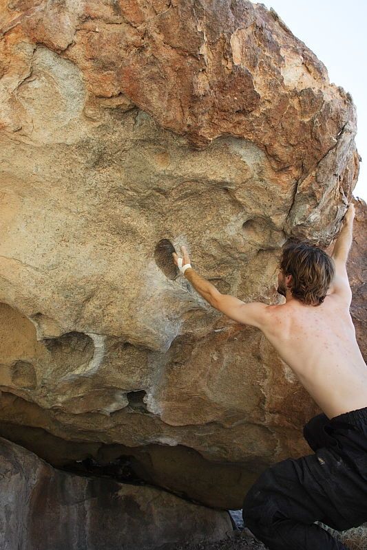 | Andrew Dreher rock climbing on No One Gets Out of Here Alive (V2) in Hueco Tanks State Park and Historic Site during the Hueco Tanks Awesome Fest 2010 trip, Sunday, May 23, 2010. |