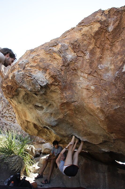| Sarah Williams rock climbing on No One Gets Out of Here Alive (V2) in Hueco Tanks State Park and Historic Site during the Hueco Tanks Awesome Fest 2010 trip, Sunday, May 23, 2010. |