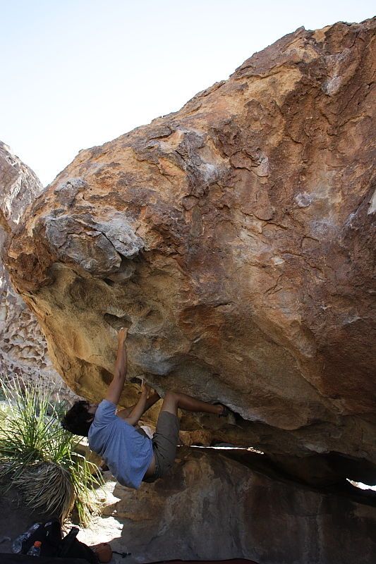 | Cayce Wilson rock climbing on No One Gets Out of Here Alive (V2) in Hueco Tanks State Park and Historic Site during the Hueco Tanks Awesome Fest 2010 trip, Sunday, May 23, 2010. |