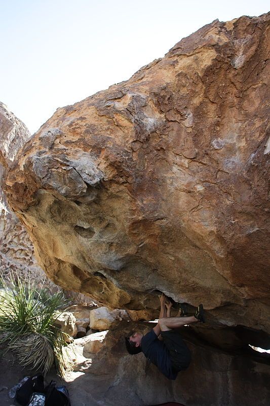 | Raanan Robertson rock climbing on No One Gets Out of Here Alive (V2) in Hueco Tanks State Park and Historic Site during the Hueco Tanks Awesome Fest 2010 trip, Sunday, May 23, 2010. |