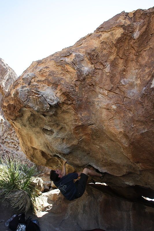 | Raanan Robertson rock climbing on No One Gets Out of Here Alive (V2) in Hueco Tanks State Park and Historic Site during the Hueco Tanks Awesome Fest 2010 trip, Sunday, May 23, 2010. |