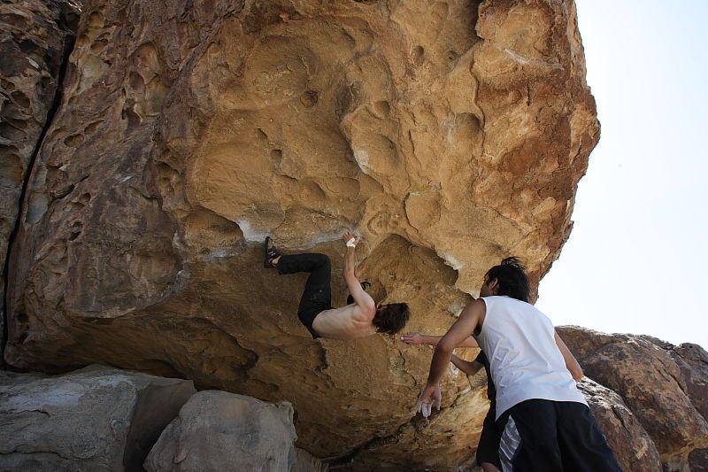 | Andrew Dreher rock climbing in Hueco Tanks State Park and Historic Site during the Hueco Tanks Awesome Fest 2010 trip, Sunday, May 23, 2010. |