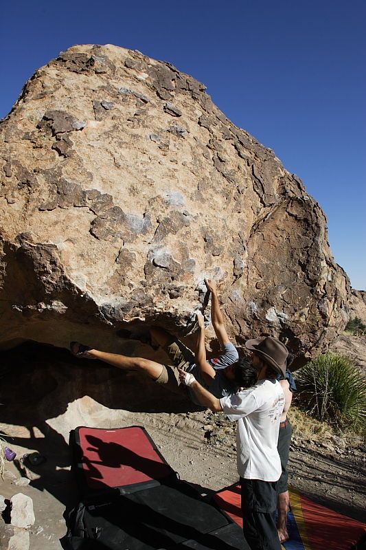 | Cayce Wilson rock climbing on No One Gets Out of Here Alive (V2) in Hueco Tanks State Park and Historic Site during the Hueco Tanks Awesome Fest 2010 trip, Sunday, May 23, 2010. |