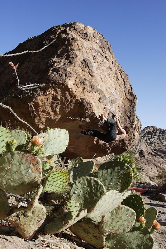 | Andrew Dreher rock climbing on No One Gets Out of Here Alive (V2) in Hueco Tanks State Park and Historic Site during the Hueco Tanks Awesome Fest 2010 trip, Sunday, May 23, 2010. |