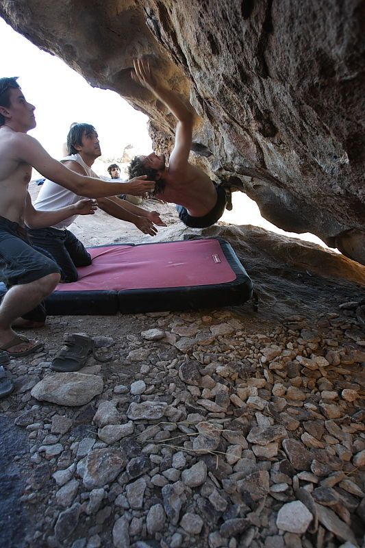 | Andrew Dreher rock climbing in Hueco Tanks State Park and Historic Site during the Hueco Tanks Awesome Fest 2010 trip, Sunday, May 23, 2010. |