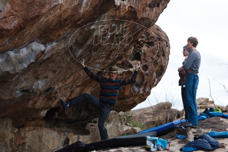 Blue Lizard Climbing and Yoga Hueco Tanks guiding, Kyle, Sam, and Sophie, on December 25, 2016