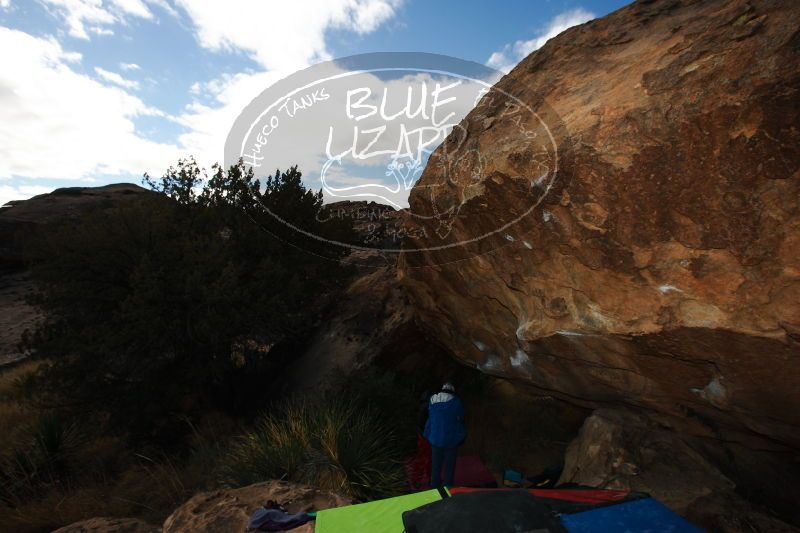 Blue Lizard Climbing and Yoga Hueco Tanks guiding, Kyle, Sam, and Sophie, on December 25, 2016