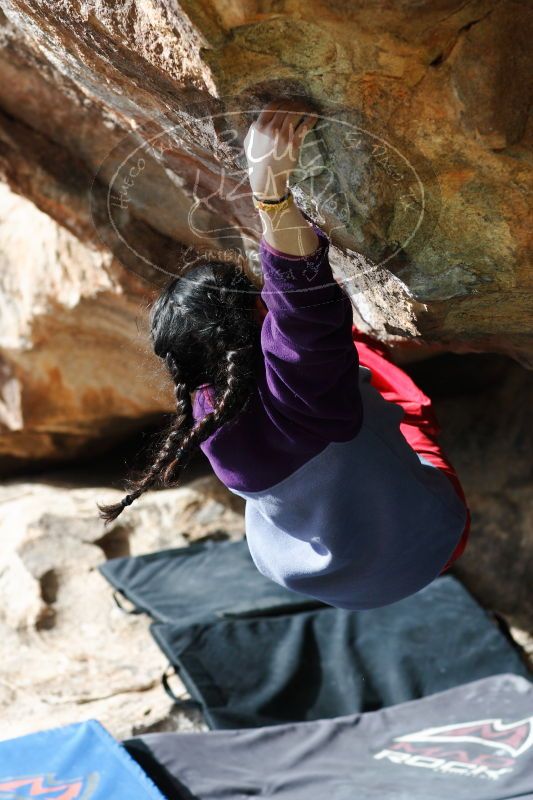 Blue Lizard Climbing and Yoga Hueco Tanks guiding, Kyle, Sam, and Sophie, on December 25, 2016