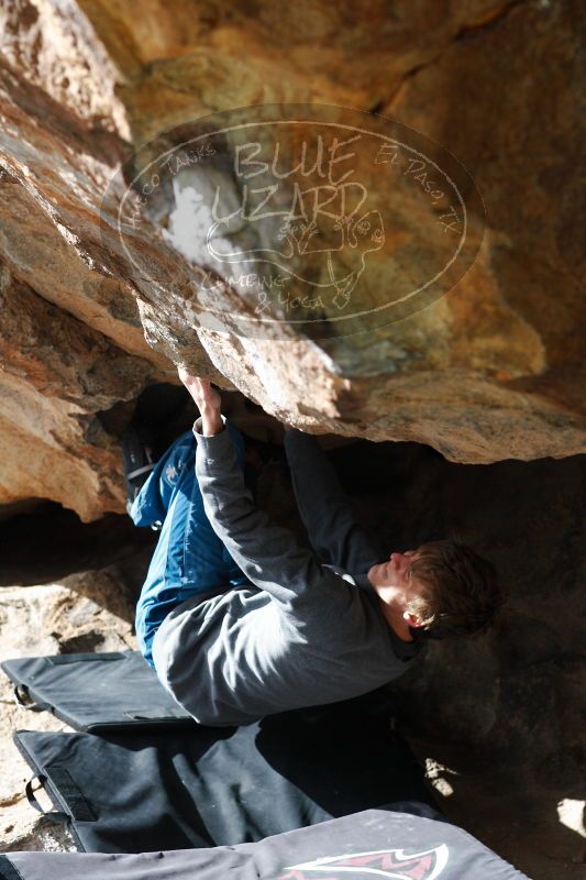 Blue Lizard Climbing and Yoga Hueco Tanks guiding, Kyle, Sam, and Sophie, on December 25, 2016