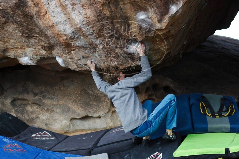 Blue Lizard Climbing and Yoga Hueco Tanks guiding, Kyle, Sam, and Sophie, on December 25, 2016