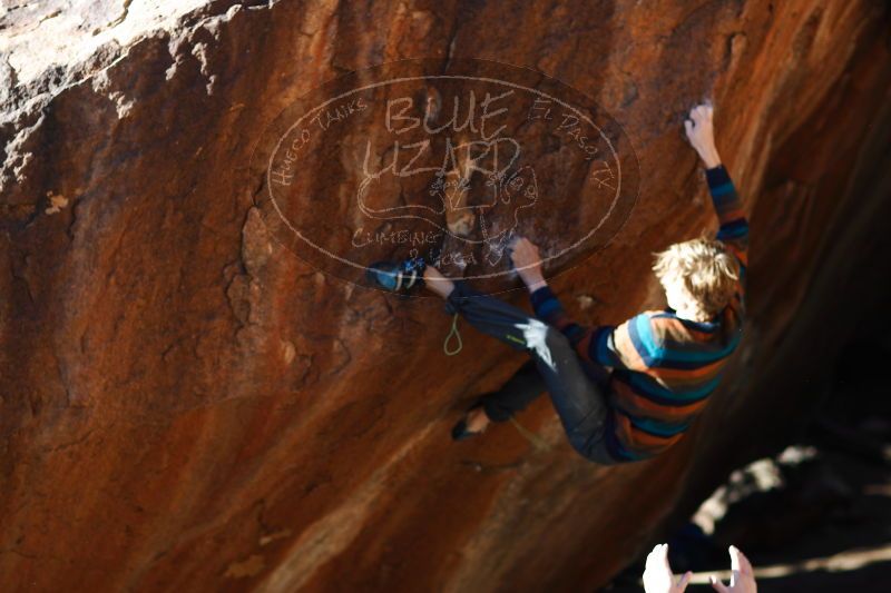 Blue Lizard Climbing and Yoga Hueco Tanks guiding, Kyle, Sam, and Sophie, on December 25, 2016