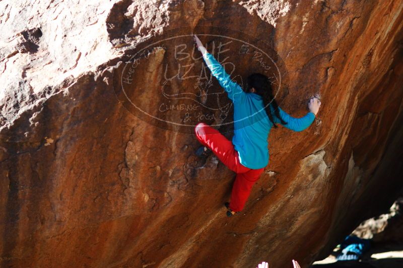 Blue Lizard Climbing and Yoga Hueco Tanks guiding, Kyle, Sam, and Sophie, on December 25, 2016