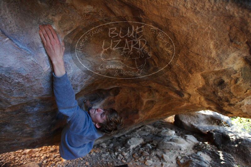 Blue Lizard Climbing and Yoga Hueco Tanks guiding, Kyle, Sam, and Sophie, on December 25, 2016