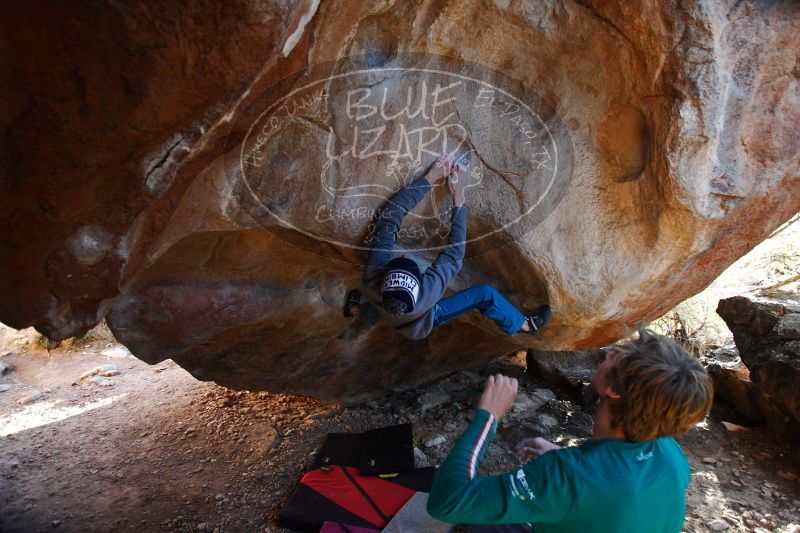 Blue Lizard Climbing and Yoga Hueco Tanks guiding, Kyle, Sam, and Sophie, on December 25, 2016