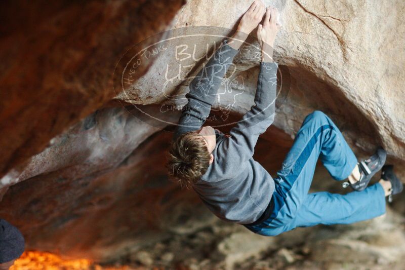 Blue Lizard Climbing and Yoga Hueco Tanks guiding, Kyle, Sam, and Sophie, on December 25, 2016