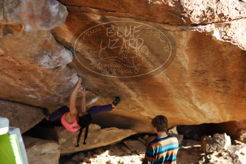 Blue Lizard Climbing and Yoga Hueco Tanks guiding, Kyle, Sam, and Sophie, on December 26, 2016