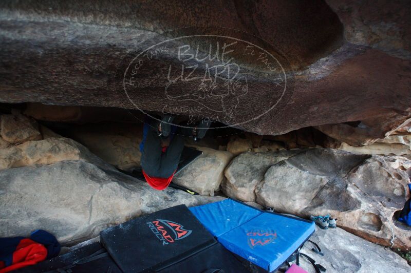 Blue Lizard Climbing and Yoga Hueco Tanks guiding, Kyle, Sam, and Sophie, on December 26, 2016