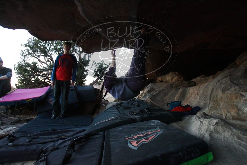 Blue Lizard Climbing and Yoga Hueco Tanks guiding, Kyle, Sam, and Sophie, on December 26, 2016