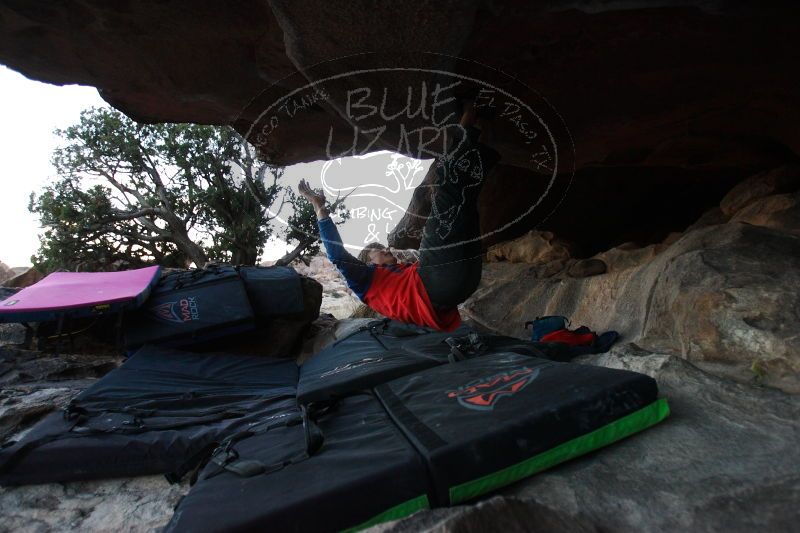 Blue Lizard Climbing and Yoga Hueco Tanks guiding, Kyle, Sam, and Sophie, on December 26, 2016