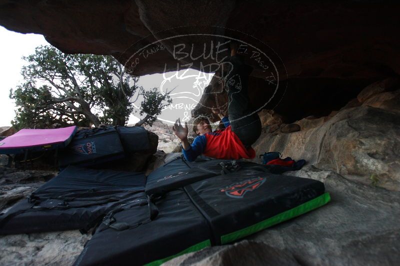 Blue Lizard Climbing and Yoga Hueco Tanks guiding, Kyle, Sam, and Sophie, on December 26, 2016