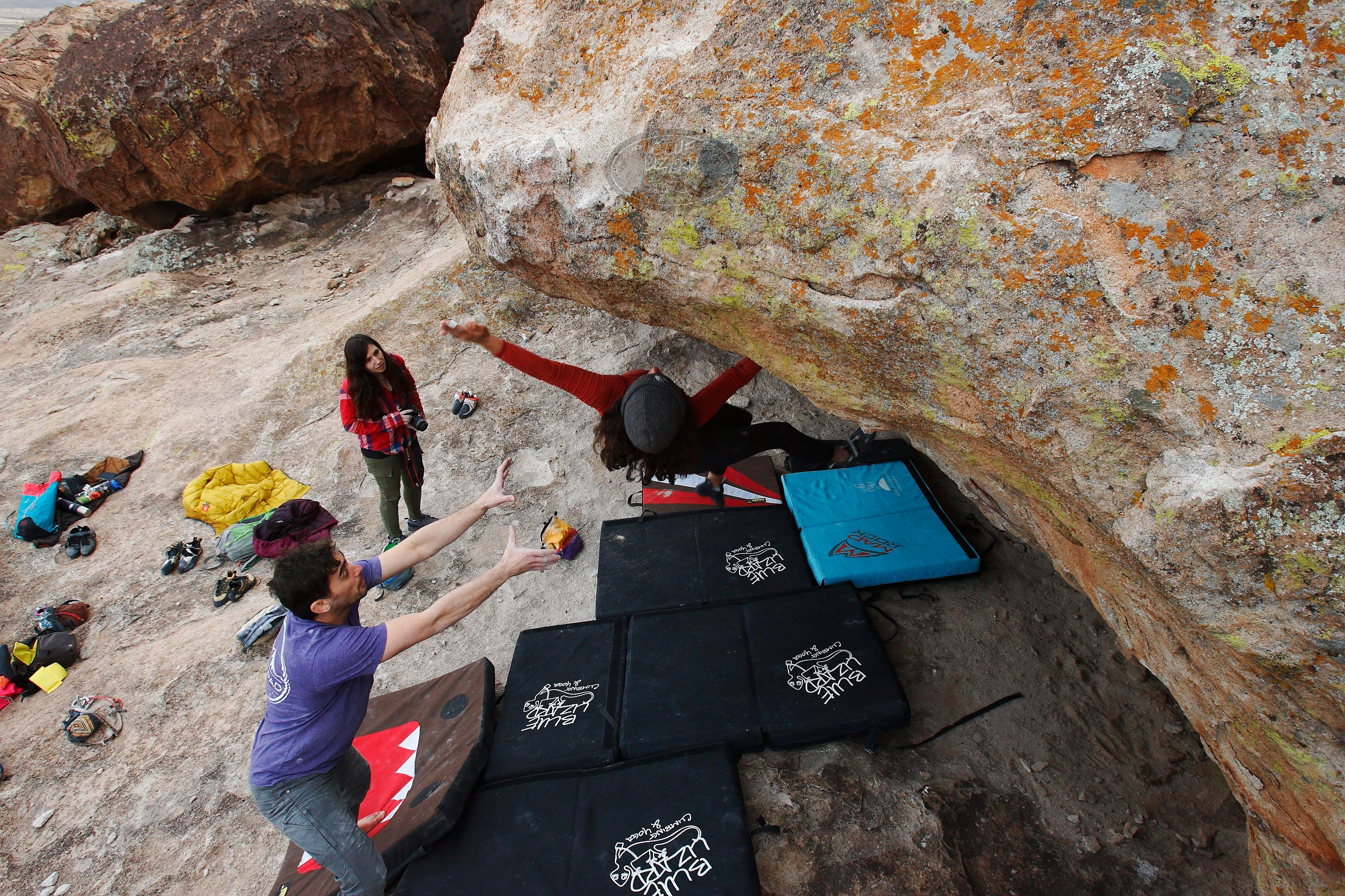Blue Lizard Climbing and Yoga Hueco Tanks guiding on December 27, 2017, with Daniel and Bethany