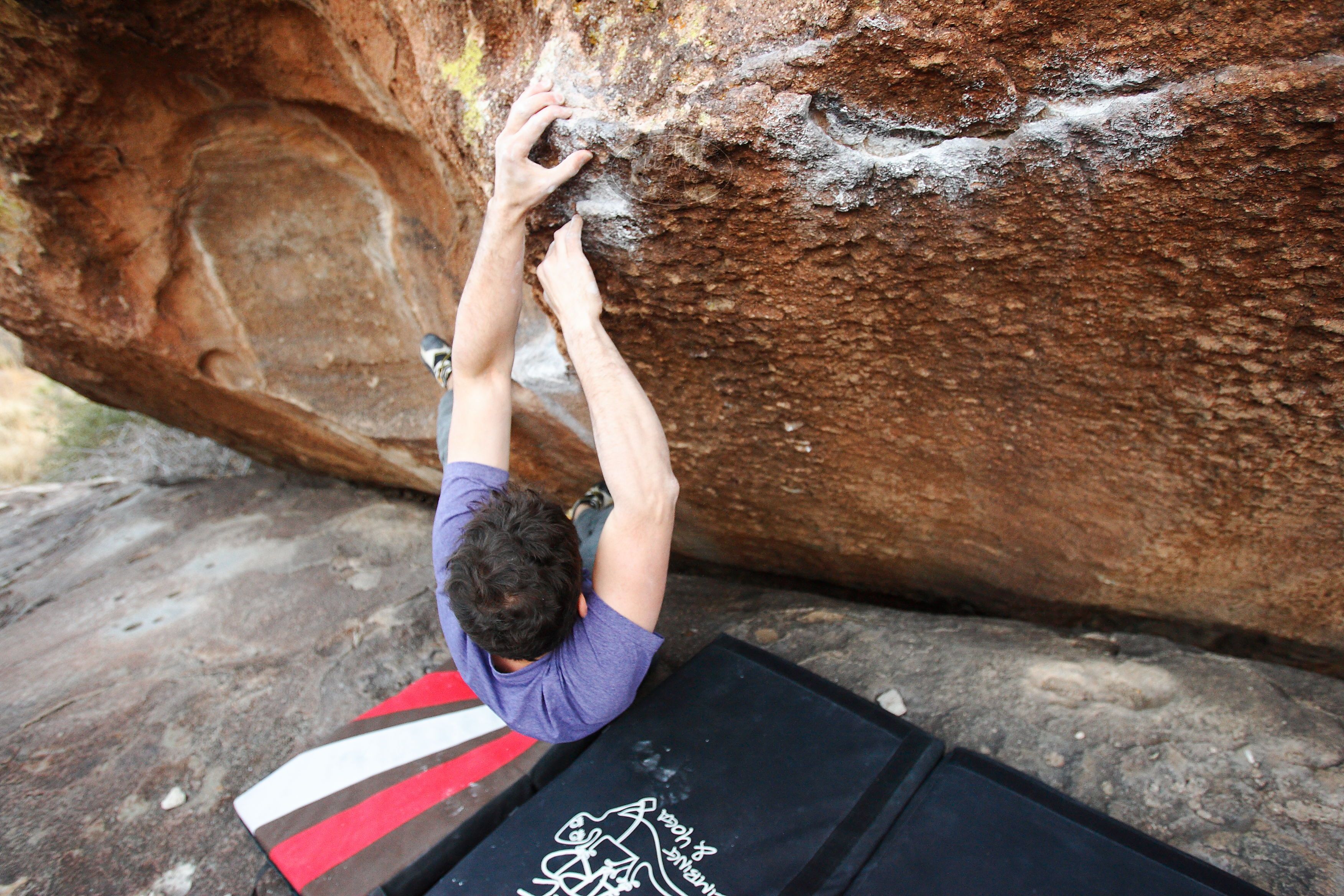 Blue Lizard Climbing and Yoga Hueco Tanks guiding on December 27, 2017, with Daniel and Bethany