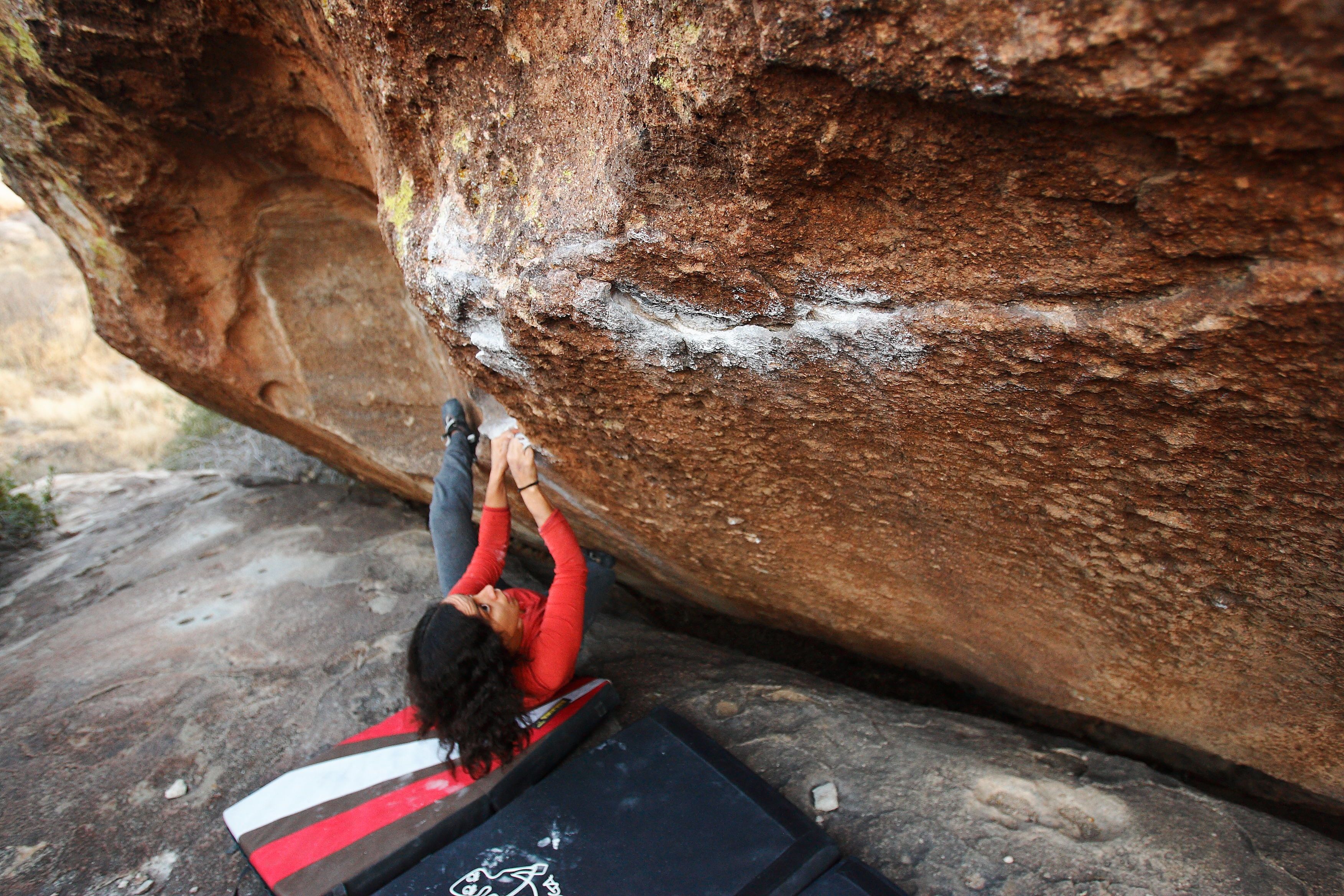 Blue Lizard Climbing and Yoga Hueco Tanks guiding on December 27, 2017, with Daniel and Bethany