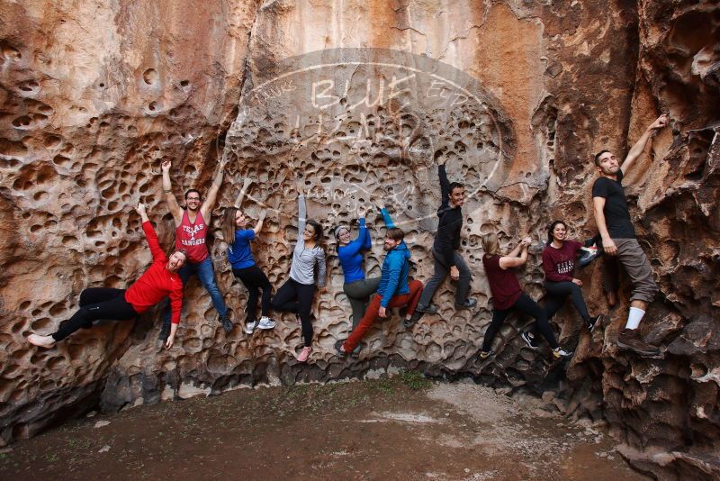 Blue Lizard Climbing and Yoga Hueco Tanks guiding on November 23, 2018, with Edsel & Haley, AJ & Valerie, Alex & Christina, Sean & Chelsey, Brett & Amanda |