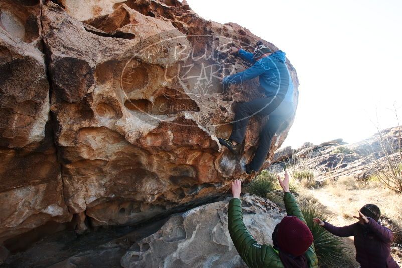 Blue Lizard Climbing and Yoga Hueco Tanks guiding on December 30, 2018, with Abby, Myles, Bill, Michelle, and Will |