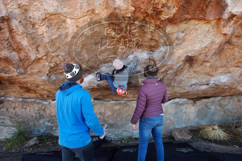Blue Lizard Climbing and Yoga Hueco Tanks guiding on December 30, 2018, with Abby, Myles, Bill, Michelle, and Will |