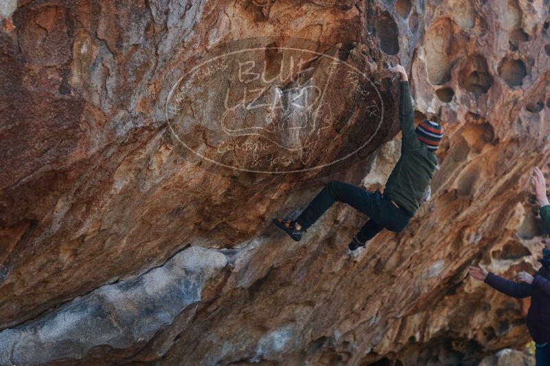 Blue Lizard Climbing and Yoga Hueco Tanks guiding on December 30, 2018, with Abby, Myles, Bill, Michelle, and Will |