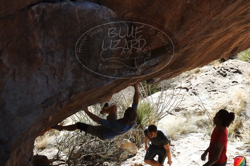 Blue Lizard Climbing and Yoga Hueco Tanks guiding on January 19, 2019, with Craig, Gisella, Ajay, Andrew, Bo, and Devon |
