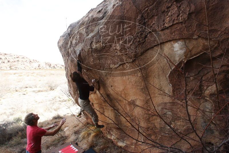 Blue Lizard Climbing and Yoga Hueco Tanks guiding on January 21, 2019, with Craig, Gisella, and Devon |