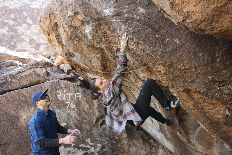 Blue Lizard Climbing and Yoga Hueco Tanks guiding on February 2, 2019, with Stephanie, Kelly, David, and Creedence |