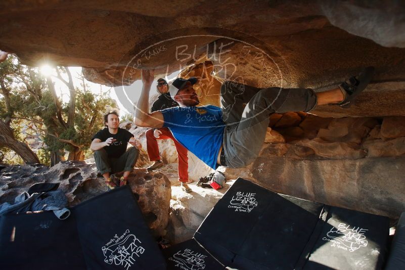 Blue Lizard Climbing and Yoga Hueco Tanks guiding on February 17, 2019, with Aaron, Heath, Kyle, Mike, and Parker |