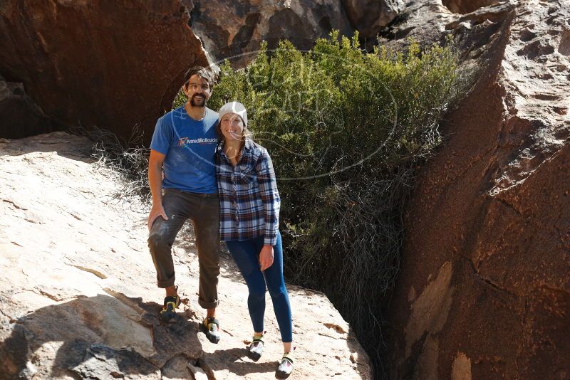 Blue Lizard Climbing and Yoga Hueco Tanks guiding on February 24, 2019, with Andrew & Lindsey; Joe; Kristina; Brad & Jana; Matt; Jason, Patty & Elise |